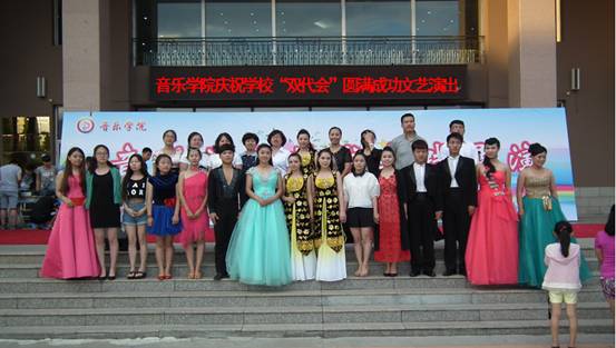 为了庆祝学校二届一次教职工代表大会暨二届一次工会会员代表大会圆满成功,7月4日,音乐学院在学校明德楼前举办了庆祝学校第二届“双代会”圆满成功暨音乐艺术实践展演,音乐学院领导、教育学院部分师生观看了演出。