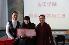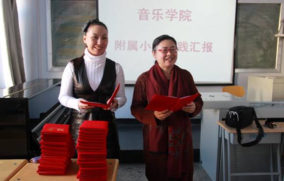 会上,徐院长首先对学生们在附属小学的任课、艺术实践等情况进行了总结,并谈到音乐学院在附属小学的实践活动得到了附属小学相关领导、老师、学生的认可和好评,为音乐学院争得了荣誉,希望师生们今后继续做好附属小学实践教学工作。随后,吴赛娟书记、李静波副院长为学生们颁发了“黑河学院附属小学校本课程任课教师”聘任证书和“优秀任课教师”荣誉证书,并鼓励同学们认真学习专业知识,争做专业能力突出、实践能力强的优秀大学生。