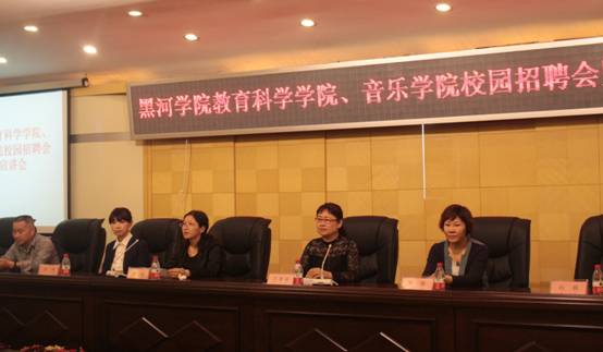 本次招聘会有晓雯音乐学校、佛山西樵实验小学、北京链家、深圳大唐、北京蓝天启航、哈尔滨卓优等多家单位,会议由音乐学院党总支书记吴赛娟主持,教育科学学院党总支书记闫英到会并发表讲话。招聘会上,