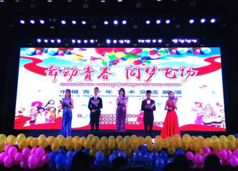 为加强中俄两国青少年文化交流,促进艺术进步繁荣,加强高校与地方的联系合作,经音乐学院和黑河青少年活动中心研究决定,共同开展中俄青少年文化交流合作。经过周密的安排部署,2018年5月20日上午9点,在黑河学院大礼堂隆重召开召开“舞动青春,同梦飞扬”——中俄青少年文化交流演唱会。参加演出的有黑河学院音乐学院全体师生、俄罗斯阿穆尔州“长颈鹿”模特艺术学校全体演职人员。黑河学院礼堂座无虚席,大家一同观看了整场演出。