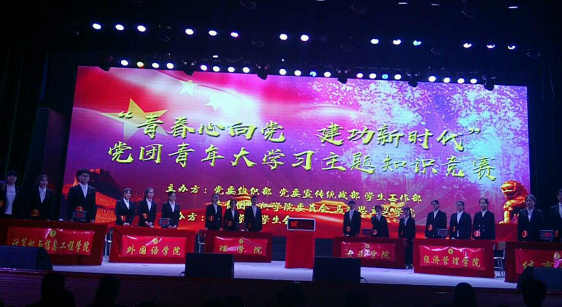 (本网讯马芳芳)2019年4月24日星期三下午2点,“青春心向党,建功新时代”黑河学院党团青年大学习知识竞赛在黑河学院大礼堂成功举办。黑河学院副校长张焕强、党委书记王刚出席了本次比赛。音乐学院党总支书记吴赛娟、学生党支部书记丛永柱带队观摩了比赛。