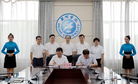 为促进应用型人才培养和校企深度融合,进一步强化我校实践教学环节,拓展学生实习实训基地和就业渠道,6月12日,学校与北京广慧金通教育科技有限公司校企合作办学签约仪式在明德楼二楼会议室举行,校长贯昌福、副校长许海深及音乐学院、教务处负责人,北京广慧金通教育科技有限公司董事长焦殿成、副总经理付晓军参加签约仪式。