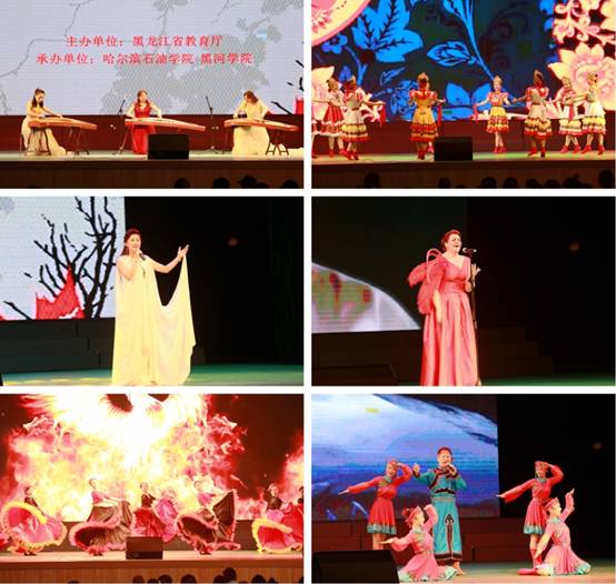 演出在歌曲《嫩水渔歌》中拉开序幕,一曲饱含达斡尔人民深情的旋律瞬间点燃全场观众热情;舞蹈《吉普赛舞》《俄罗斯的夏天》、二胡独奏《流浪者之歌》、女声独唱《一首桃花》《我的心如花绽放》等节目,赢得在场观众的热烈掌声,展示了我校中俄合作办学的丰硕成果;器乐重奏《长白山歌》、木管五重奏《桔梗谣》、大堂鼓合奏《鼓威》等节目,将整场演出带入一个又一个高潮;演出在两校共同完成的歌曲《共筑中国梦》中圆满落下帷幕。