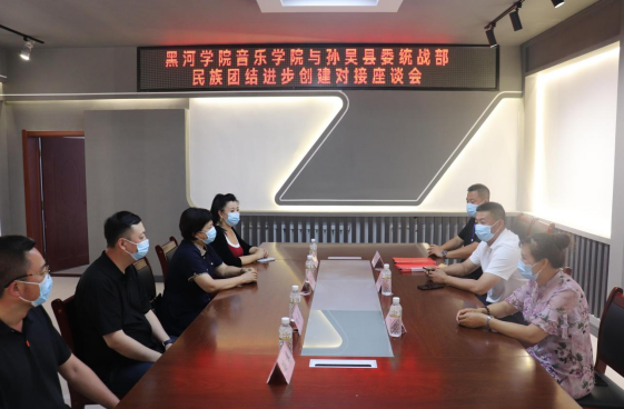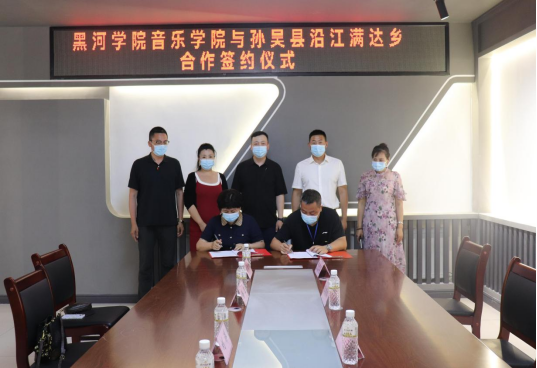 活动中,徐卫院长一行四人与孙吴县委统战部部长王经纬,副部长徐玉梅,进行深入座谈。就深化校地合作,促进民族团结进步创新,推进乡村特色旅游发展,拓宽大学生实习就业渠道,民族非遗文化挖掘研究等方面交换了意见。座谈会后,徐卫院长代表黑河学院音乐学院与孙吴县沿江满达乡签署实习就业基地合作协议。